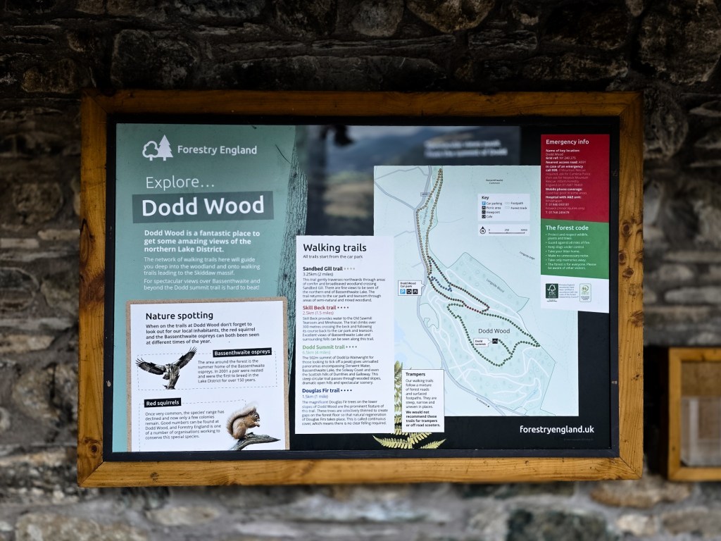 After checking the weather and confirming it would be a glorious day, we set off for Keswick early last Saturday morning, with Dodd Wood as our destination. As you navigate around Keswick via the Keswick Bypass, you’ll reach the Forestry England car park just a few short miles ahead. Arriving early not only ensures you avoid the crowds but also secures a carparking space, especially on a sunny day when the lakes are bustling. Please note that parking charges apply unless you’re a member; we spent a few hours there and paid £5.50. Payment can be made conveniently by debit/credit card or using the app.